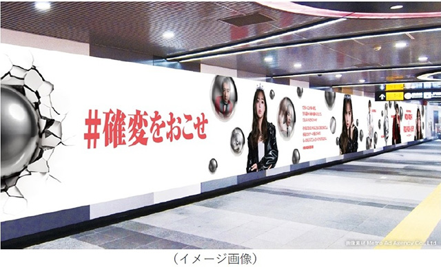 パチンコ・パチスロが本来持っている遊技としての魅力や最新情報を発信しながら、最強のエンターテインメントを提供するプロジェクトとして、メーカー団体の日工組が展開している「PACHI-PACHI-7(パチパチセブン)プロジェクト」。新たな展開として令和を代表するエンターテイナーとともに、エンターテインメント性や楽しさを再発信する取り組みが行われているが、その一環として1月12日(月)〜1月18日(日)の1週間、東京メトロ渋谷駅構内の渋谷プレミアムセットに巨大広告が掲出される。
