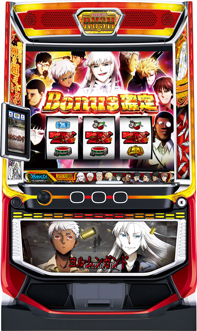 スペックはAT機となっており、AT「ヨルムンガンドラッシュ」は純増約2.4枚/G・初期ゲーム数50Gのゲーム数上乗せタイプ。消化中はレア役成立時にゲーム数上乗せ・ボーナス・ストーリーのトリプル抽選が行われ、ストーリーを成功すれば多彩な報酬が獲得できる「ヨルムンガンドチャンス」へ。